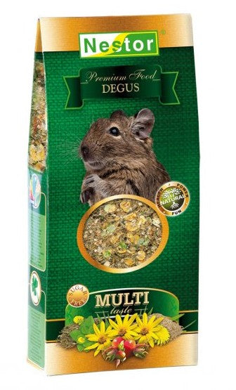 Wielosmakowy pokarm MULTI-TASTE PREMIUM oparty jest wyłącznie na naturalnych składnikach. Nie zawiera nie tylko żadnych konserwantów, ale i barwników. Receptura tej doskonale zbilansowanej mieszanki została opracowana z myślą o koszatniczkach tak, by zapewnić im wyjątkowo smaczne pożywienie, które jednocześnie dostarcza wszystkich niezbędnych składników, wspomagających zdrowie i prawidłowe funkcjonowanie organizmów tych uroczych gryzoni.