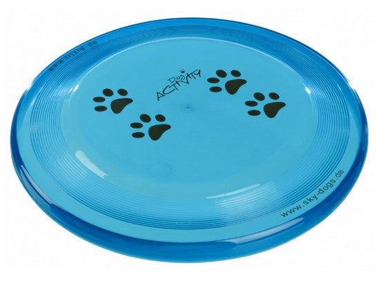 Zabawka dla psa w formie dysku do rzucania, o średnicy 19 cm.